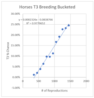Below s a table of the Magic Numbers for each Animals' tier and the number of reproductions required. What this means is that (for example) after 250 Chicken Reproductions you always will get a T2 or T3 chicken. I've included the data used to determine these numbers in the sections below. These numbers are also very much an estimate. Nice round numbers were assumed / chosen based off of smitty's historical preference to use them. TBD means that the number has yet to be determined. N/A means the tiers do not yet exist in the game (Pig or Toy Soldier for example) while other times its because there is not enough data yet.
